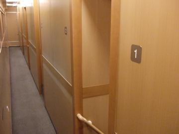 廊下の途中の昇り階段の方がA個室への入口、それと交互にある下り階段の方がサンライズツイン個室への入口です。