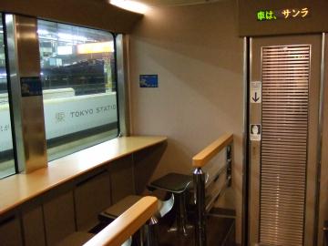 右の写真のとおり、サンライズツインの窓は、ホームと同じ高さになってます(爆)