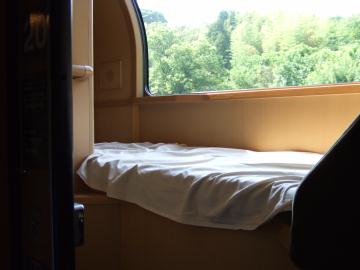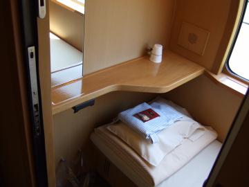 ベッドはB寝台ゆえ狭いですが、部屋はB寝台とは思えぬほどです♪ ただし、さすがに息子との添い寝には狭かった…(苦笑)