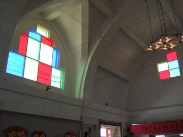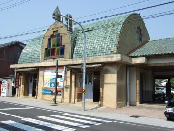 小さく古い駅ですが、駅舎はステンドグラスのはまった小洒落た駅です♪