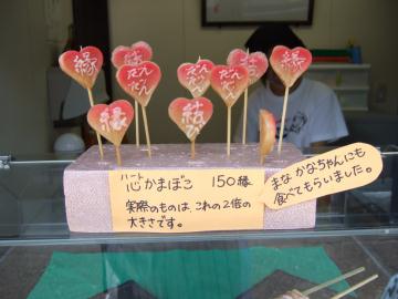 こちらは「縁結び本舗」なるお店で、休憩処ですが、右の写真のとおり、ハート形のかまぼこが売ってました♪