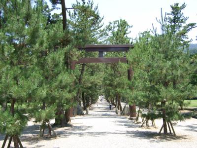 鳥居をくぐると、広大な敷地に、拝殿へ続く道はずっと長く伸びてまして、この独特の雰囲気が神聖な感じです。