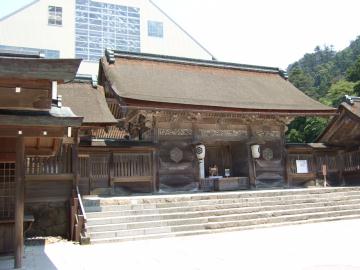 こちらは、拝殿から西のほうにある神楽殿です。巨大な注連縄でよく知られているのはこちらの方になります。
