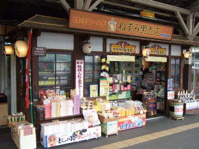 米子駅に着きますと、1番線にはこのとおり「ねずみ男売店」が♪