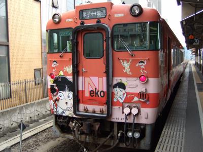 左の写真は、弓ヶ浜駅で交換した対抗列車である鬼太郎列車であります♪