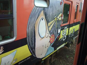 鬼太郎キャラの列車が4種類あるようで、そのうちの1つがこのねこ娘列車であります♪