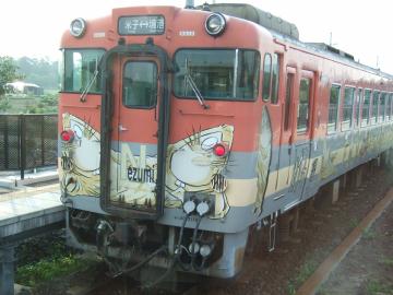 途中の中浜駅で、ねずみ男列車と交換をいたしました♪