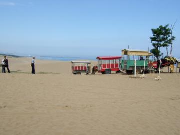 この真夏日の天候の中、白い砂が眩しいこの砂丘…ものすごく、あ、暑い!!!