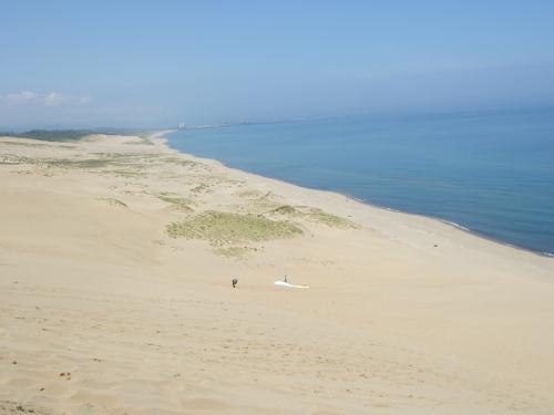 なんとか砂漠…もとい砂丘の丘を登り、いわゆる「馬の背」に登ると、そこからは清々しい日本海が広がります♪