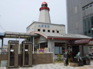 駅舎はこんな感じ♪ 地方の小さな駅ですが、港町である境港の代表駅らしく、灯台を象ったデザインがシャレてます♪