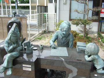 駅の写真の右の方に見えるブロンズ像を詳しく見たのが右の写真ですね♪