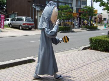 妖怪神社の近くにいらっしゃったねずみ男さんです♪ にこやかな顔つきで、子どもたちと記念撮影なさってました♪