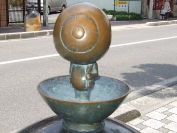 目玉おやじのブロンズは、水木ロード内にもいくつかありますが、大抵は鬼太郎などと一緒ですが、この目玉おやじはピンで立ってました♪