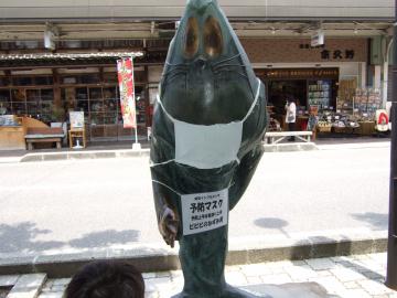 右はねずみ男ですが、なんと、新型インフルエンザ対策啓発のためにマスクをしておられます☆