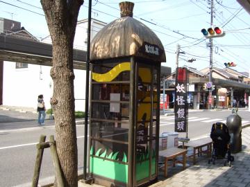 そして、電話ボックスも、「鬼太郎の家」と書いてあって、このとおり、鬼太郎仕様になっておりました♪