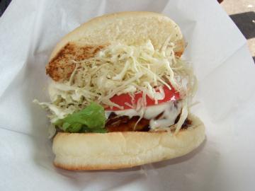 また、水木ロード内にあるショップにて、「まぐろバーガー」を賞味♪