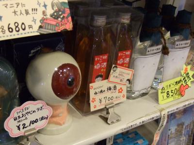 土産物屋も、妖怪グッズがいっぱいですが、大人向けのものもありまして、写真のとおり、お酒がいくつか☆