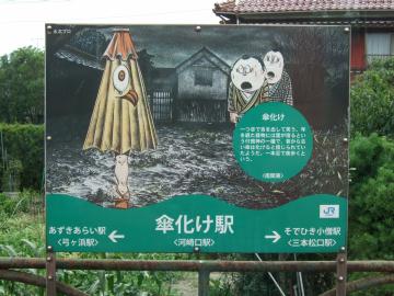 三本松口駅(そでひき小僧駅)と河崎口駅(傘化け駅)