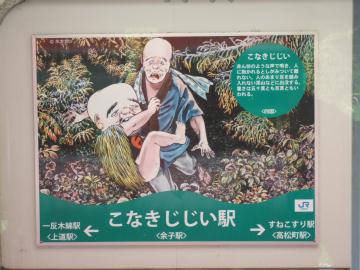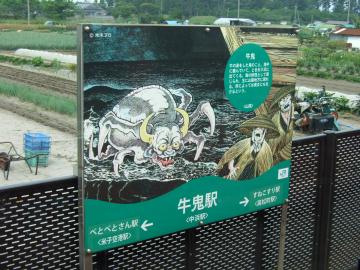余子駅(こなきじじい駅)と上道駅(一反木綿駅)