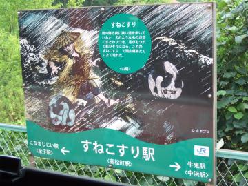 中浜駅(牛鬼駅)と高松町駅(すねこすり駅)