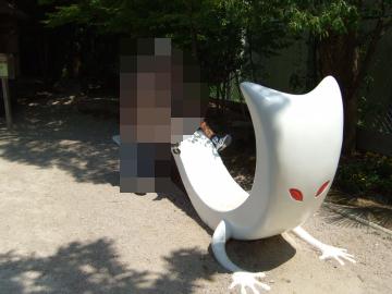 ぬりかべくんとも記念撮影ができます♪また、一反木綿くんがおりまして、息子がまたがって遊んでおりました♪